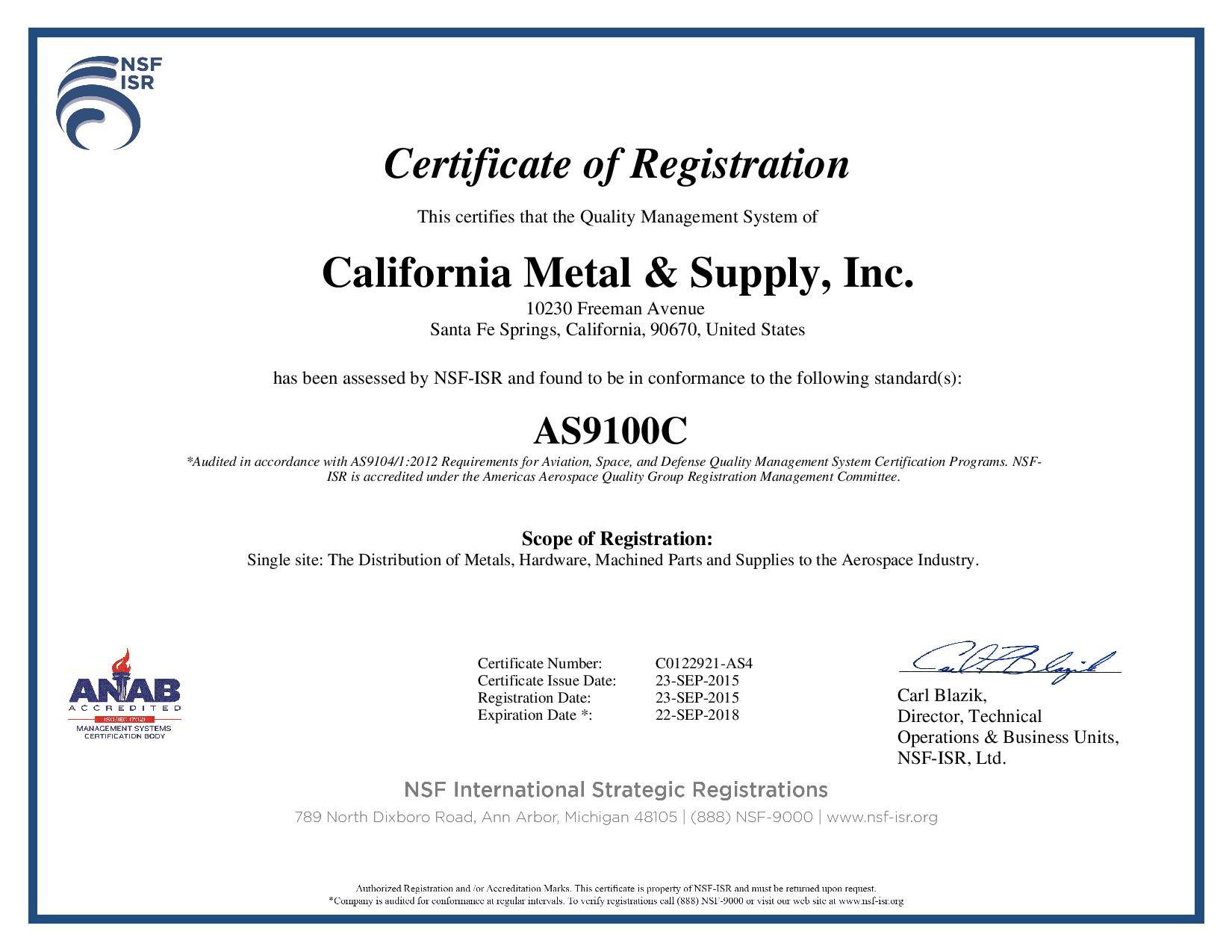 YOUR AEROSPACE METAL SPECIALIST. AN ISO/AS CERTIFIED
